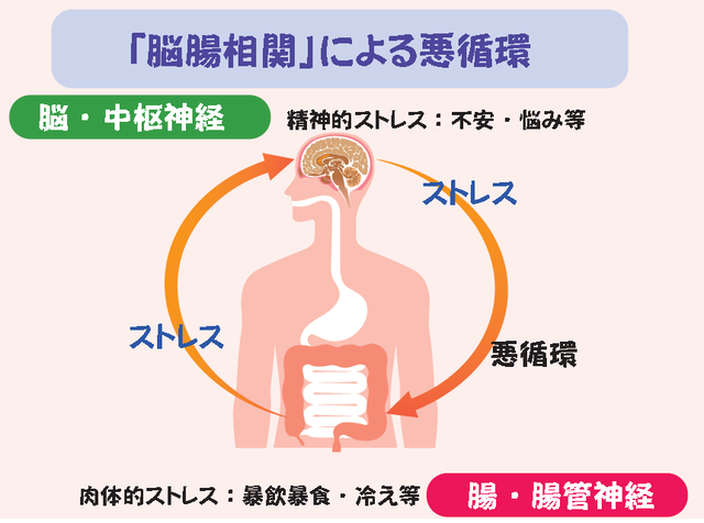 また腸に病原菌が感染すると、不安感を感じやすくなる(ストレスに敏感になる)ということもわかってきました。これを「脳腸相関(のう・ちょう・そうかん)」といいます。